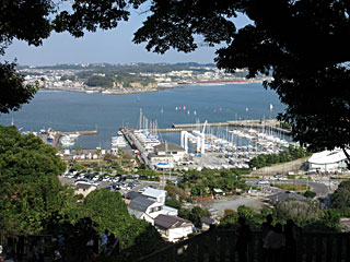 2回目のエスカーを降りたところから見えたヨットハーバー。東京オリンピック(1964年)のヨット競技で使うために、岩場を埋め立てたのだそう。