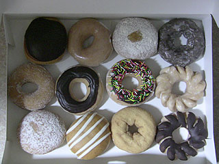 クリスピー・クリーム・ドーナツ12個か、写真のバラエティセットなら、並ばずに買えます。(\1,800)。