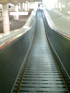 水天宮前駅にある、エスカレータではなく、斜めの動く歩道。水天宮前駅には、東京シティエアーターミナルがあり、トランクを持った人のために、こうなっています。
