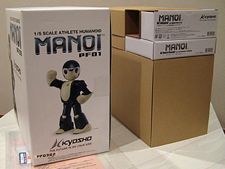 二足歩行の人間型ロボットです。妻がテレビでマノイを見て、「2人(?)で戦うのだけど、戦うどころか2人とも自分で転んで、起きるのがかわいい」と、欲しくなったのだけど 完成品は無くてキットのみ、当方が組み立てることになりました。