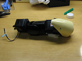 土曜日の午後から始めて、夕食前に両手まで、その夜22:00頃に両足まで組みあがりました。日曜日朝、頭部から組み立てを再開、午前中に一通り組みあがりました。午後に不具合部分の修正と試運転。