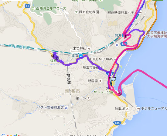 バスで熱海の海岸近く(銀座)で降りて、600m歩いて着きました。