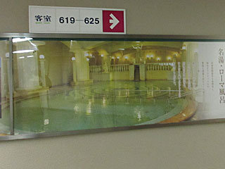 ローマ風呂の写真は撮れませんでしたが、左の写真のような感じ。普通より深くて広い温泉。奥の高くなったところにも湯船があり、奥の右にはサウナ、左には打たせ湯もあります。