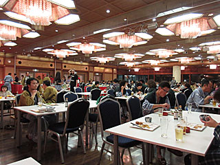 夕食は90分間のバイキング。広い宴会場がほぼ満席で、皆さん思い思いの料理を山盛りに取っていました。