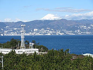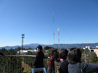 初島には中継局があり、熱海方面に向けて放送しています。赤白のアンテナは静岡放送1557kHz、FM放送はNHK(84.2MHz)と静岡FM(83.0MHz)があるそうで、左側のアンテナでしょうか?