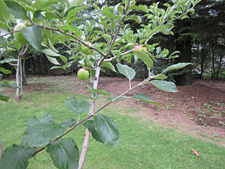 ニュートンのリンゴ。向井千秋さんが持ち帰った宇宙ツツジや宇宙松も植わっていました。