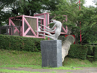 ぐりーんふらわー牧場大胡。寺沢川の谷を利用して作った、遊具や動物のケージがありました。