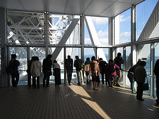 大鳴門橋下の「渦の道」。この日(11/03)は中潮(月齢3.4)で、干潮は14:20。瀬戸内海から太平洋に抜ける速い流れはありましたが、期待したほどの大きな渦潮にはなっていませんでした。でも人出は多かった。