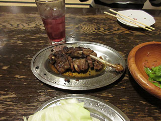 お勧めは骨付き鳥。スパイシーでニンニクも効いており、ビールが進みます。