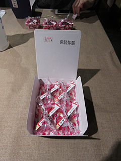 信玄餅の包装にチャレンジ。売店には無い4個入り信玄餅の包装を体験できて、約半額の\390(税込み)