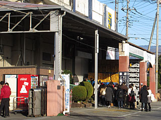 信玄餅で有名な桔梗(ききょう)屋の工場。中央高速「一宮御坂(いちのみやみさか)」インターを降りてすぐのところにあります。