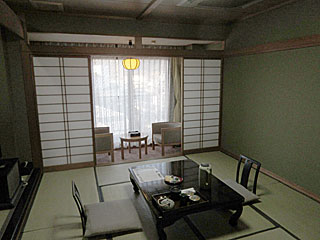 今回の宿は、ホテル古柏園。四季クラブで予約しました。朝食が付いて、入湯税込み\5,550/人。四季クラブは割安なので、低層階かと思いましたが、6Fでした(7Fは大浴場、8Fはレストラン)。