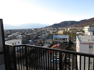 公園から霧のかかった甲府盆地を見下ろすことができます。