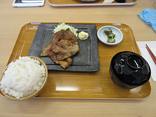 近くの道の駅「つる」で、豚生姜焼き定食の昼食。