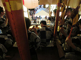 ちょうど上がった時に、おはやしの練習が始まり、耳がキンキンしました。