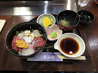 ビューランドから降りてきて、レストラン「美加茂」で昼食。海鮮丼。