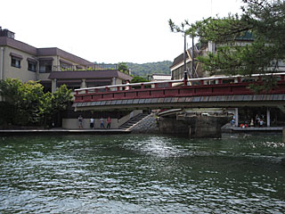 智恩寺から、天橋立に渡る橋は「廻旋橋」。(跳ね上がるのではなく)回転して船を通します。ちょうど船が来て、回転しました。