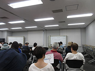 8:30に、烏丸御池近くのビルの2Fに集まり、「京の夏の旅 食遊彩都 観覧席で見る 祇園祭と京料理」ツアーの説明を受けます。集まった人は約100名。