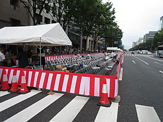 有料席はこんな感じ。来た時はまだ、車が走っていましたが、既に片側2車線になっていました。