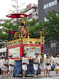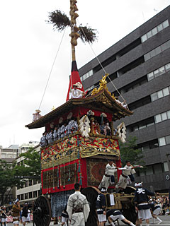 先頭の山車(長刀鉾)には稚児が乗っています。