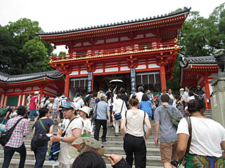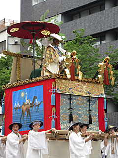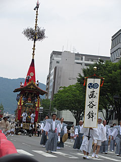 7/17が祇園祭(前祭)の本番です。見学の指定席券と京料理の昼食が付いたツアーですが、指定席券には\3,180と書かれていました。チケットピアとかで売り出されるのだそうですが、今回は昼食付きのツアーにしました。本番を見ているのは年配の方が多かったような気がします。