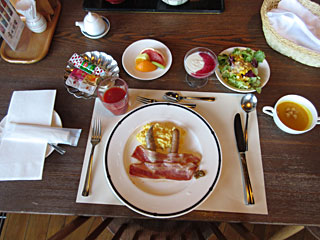 遅めに出たので、御殿場先の、風車が回っている「富士松展望レストラン」で昼食にしました。入ったところ、外国の団体さんがバイキングの昼食中でしたが、女性と男性の店員さんも外国の方で、外国気分。