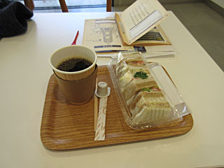 昼食は、星の塔の前のカフェで、サンドウィッチ(\500)、とコーヒー(\400)