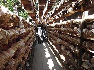 途中で、川越氷川神社に立ち寄りました。縁結びの神社だそうで、この日もすごく混んでいました。タイ釣りや、絵馬のトンネルがありました。