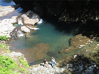 四万の甌穴群。小さな石が川底で長い年月コロコロしているうちに、大きな穴になったのだそう。