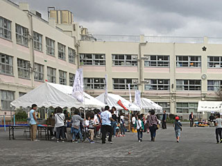 リアル謎解きゲーム 大江戸今昔絵巻〜船堀街道編〜は、東松中央通り商店街および近隣エリアで行われ、受付場所は江戸川区立東小松川小学校でした。小学校の催し物にしては、謎解きがあったり、浅草から人力車を呼んだりして、お金がかかっていました。近くにボートレース場があり(謎解きのヒント置き場としても使われていた)納得しました。