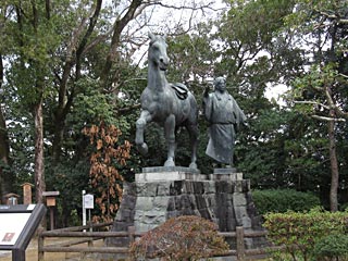 宿に荷物を置いて、早速 高知城に行きます。高知城に入る手前にあった「山内一豊公の像」