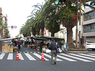 ホテルをチェックアウト。ホテル前の通りでは日曜に朝市があり、片側車線が通行止めになっていました。