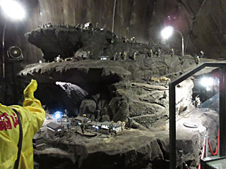 鉱山列車に乗ります。トンネルを通り数分で到着、あとは歩いて坑道の中を見学。