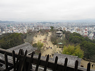 天守閣からの眺め。松山城の方が高知城よりハシゴは急だったけど、天守閣へは早く着けました。