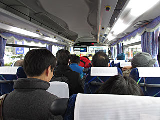 大街道からリムジンバスで松山空港に向かいます。大街道でほぼ満席、JR松山駅前では補助いすもほとんど全部使っていました。