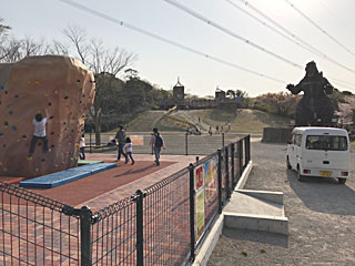 冒険ランド。ゴジラのすべり台、45mのローラーすべり台、ボルダリング施設があります。