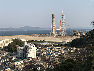 金谷港の南にある横須賀火力発電所(の敷地)。新しい発電所を建設中(Wiki)だそうです。