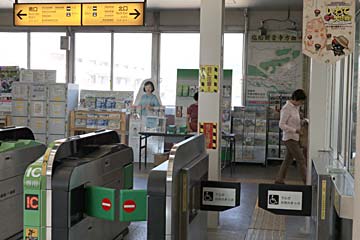 今回の「駅からハイキング」は青梅線河辺駅からです。今回は参加者が少なく、受付(写真中央)に並んでいません。係りの人も一人だけでした。