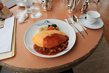 謎解きの途中、サンパーラーでオムライスのランチ。