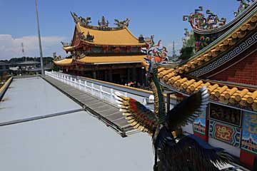 聖天宮は鶴ヶ島ICの近くにある、道教のお宮です。台湾の康國典(こうこくてん)大法師が、ここにお宮を建てよ、とのお告げを受け、台湾の宮大工を呼び寄せ、十五年を掛けて建てたのだそう。この日は東京でも37℃とかでしたが、埼玉の高速道路では、車の温度計が40.5℃まで上がりました。
