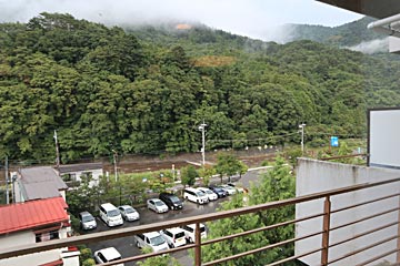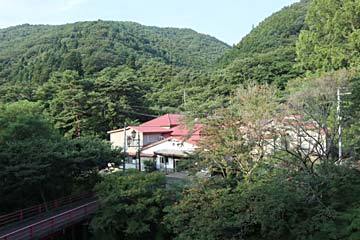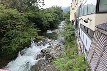 ホテルの裏側。川は五百川。小さな滝になっており、我々の部屋は川側なので、ザーザーと川の水が落ちる音が終日聞こえました。