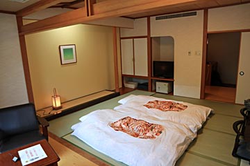 部屋は宴会場(夕朝食会場)前の和室。やはり布団は敷いてありました。