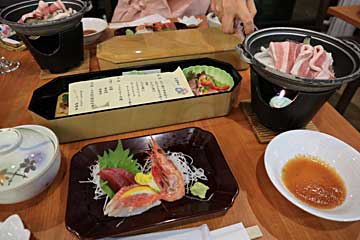 夕食は、伊東園の普通のバイキング。25分で炊き込みご飯が出来るというのでトライしてみました。汁の分量を間違えず、途中でフタを開けなければ誰でもおいしく炊けます。