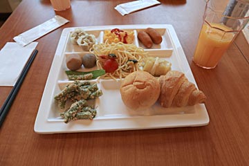 朝食もバイキング。席も自由。食べ終わったらカードを裏返して帰ります。
