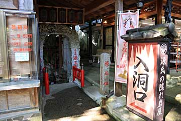 洞窟内部。源の有綱(ありつな)が隠れたが、米のとぎ汁が洞窟の外に流れ出て頼朝軍に発見され、無念の最期を遂げたとのこと。