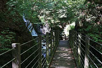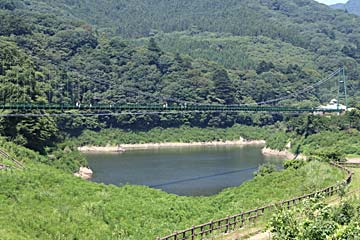 三島スカイウォークのような、行って帰ってくる観光用の歩行者専用吊り橋です。全長320メートルで「無補剛桁歩道吊橋としては」本州最大だそうです。