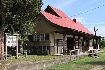 昔の「熱塩駅」。日中線記念館になっています。日中線は、喜多方駅からこの熱塩駅まで、11.6kmを結んでいた国鉄の単線路で1984年に廃止されています。