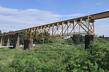日中線記念館から車で30分、市ノ戸川橋梁に来ました。線路はJR東日本の磐越西線、単線で非電化です。