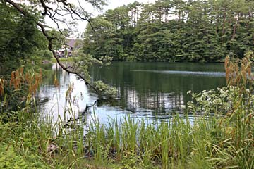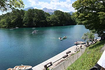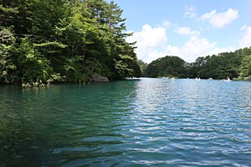 最初の毘沙門沼、手こぎボートが出ていました。我々もボートに乗ります。30分¥700