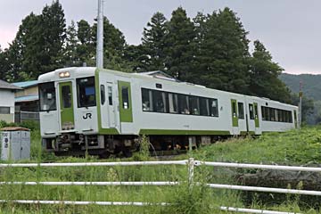 16:00頃に来ましたが、近くの「山都(やまと)」駅の時刻表を見ると、下りが15:00、17:14、上りが15:39、18:22で電車は来ませんでした。JR東日本が「SLばんえつ物語」を走らせているようですが、この日はお休みでした。